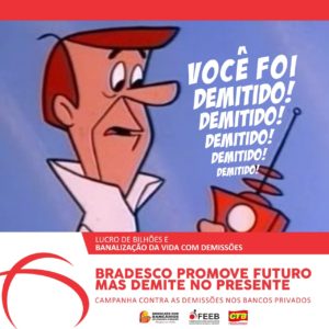 O Bradesco não está para brincadeiras e segue seu programa nefasto de demissões. Mesmo tendo firmado acordo com o Movimento Sindical, de não demitir durante a pandemia, as demissões seguem em ritmo acelerado. Em todo Brasil, foram mais de 390 (números parciais). Em nossa base foram 04 demissões: 02 na agência 3522; 01 na agência 0239 e 01 em Buerarema.